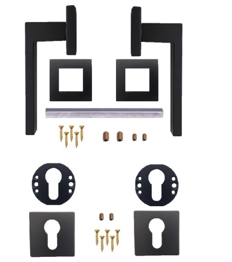 - komplet klamek do jednych drzwi (2 sztuki; klamkę lewą i prawą),
