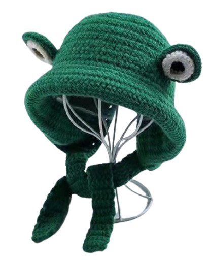 ВЯЗАННАЯ ШАПКА-ЛЯГУШКА, ЗЕЛЕНАЯ С ЗАВЯЗКОЙ