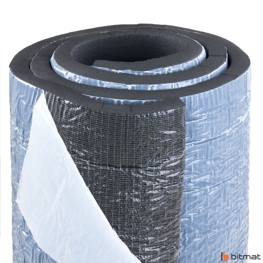 Pianka izolacyjna gumowa o strukturze komórek zamkniętych z warstwą mocnego kleju, posiada wysokie właściwości akustyczne oraz izolacyjne.
