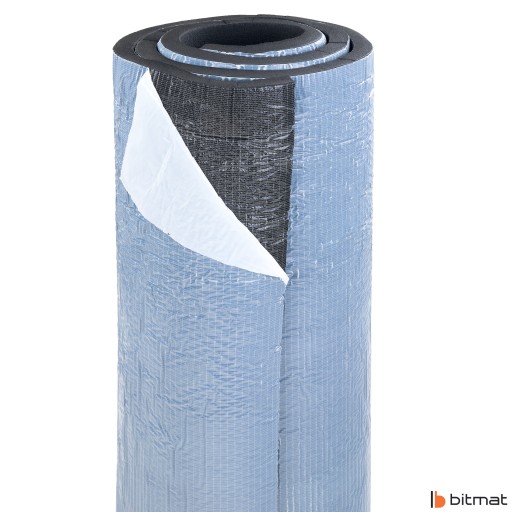 - Pianka wyciszająca gumowa typu K32s marki Bitmat o wysokim współczynniku tłumienia, przeznaczona do stosowania w szerokim zakresie temperatur -50 stopni do 85 stopni C.