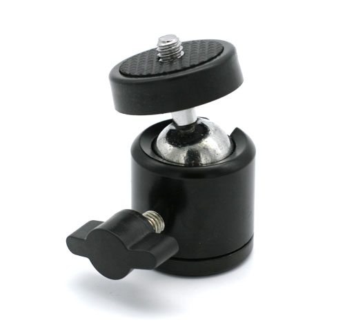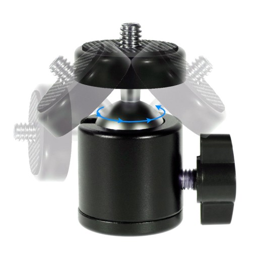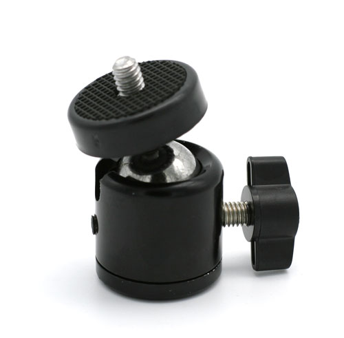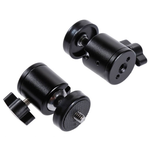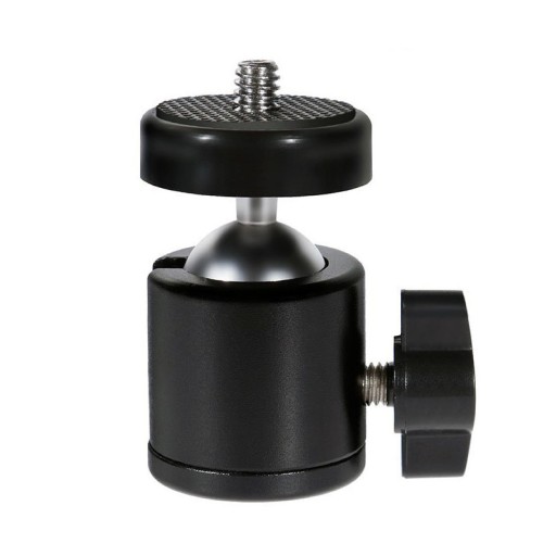 - Mała głowica kulowa z gwintem męskim 1/4 cala oraz mocowaniem na statywy, na gwint 1/4 cala.