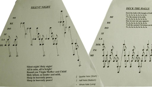 - nuty na 3 utwory zapisane na kartkach do podłożenia pomiędzy pudło rezonansowe a struny.