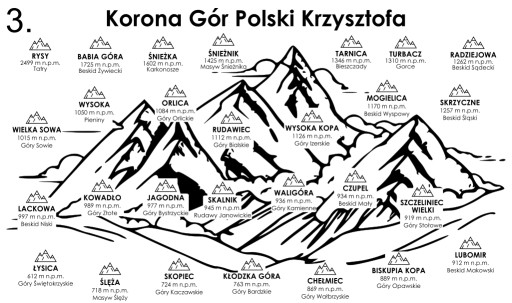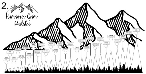 Drewniana tablica KORONA GÓR POLSKI z elementami do zaznaczenia zdobytych szczytów!