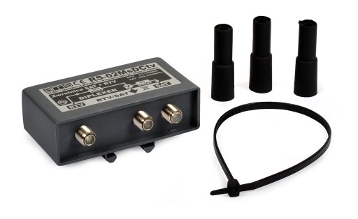 Rozgałęźnik - sumator RS-02M umożliwia przesyłanie zasilania +12V do anteny RTV. RS-02 posiada stabilizator +12V w zasilaniu anten RTV. Może służyć do rozdzielenia sygnałów SAT i RTV naziemnych.