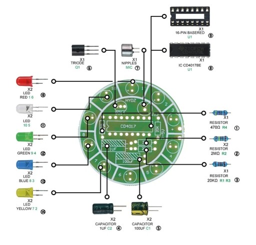 10 красочных светодиодов с голосовым управлением для обучения пайке