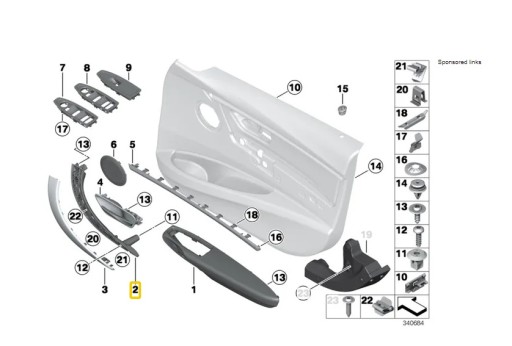 UCHWYT KLAMKA DRZWI WEWNĘTRZNYCH BMW 3 F30 F80 F31 F34 PRZÓD PRAWY