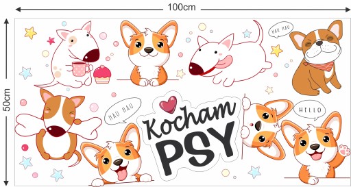 НАКЛЕЙКИ НА НАСТЕНУ СОБАКИ СОБАКИ 50x100см PSY2