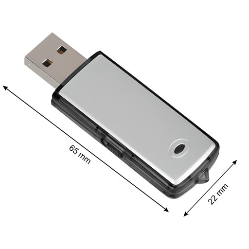 Mini dyktafon cyfrowy w formie pendrive umożliwia dyskretne nagranie dźwięku w dobrej jakości. Na jednym ładowaniu akumulatora urządzenie pracuje przez ok. 14-16 godzin. Pamięć wewnętrzna 8GB pomieścić może w sumie ok. 100 godzin nagrań. Miniaturowe urządzenie, które ułatwi zarejestrowanie wysokiej jakości dźwięku w dyskretny sposób, bez wzbudzania zbędnych podejrzeń. Dodatkową funkcją jest możliwość korzystania ze sprzętu jak ze zwykłego pendrive'a czy dysku.