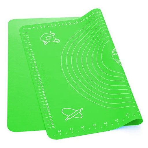 Nowoczesna, zwijana mata silikonowa, z jednej strony mamy powłokę zapobiegającą przywieraniu, z drugiej strony świetnie trzyma się blatu zapobiegając przesuwaniu maty;
