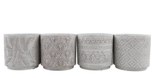 Osłonka wykonana z ceramiki w kolorze jasno-beżowym z białymi przetarciami. Subtelne kolory i delikatne zdobienia bazujące na motywach roślinno-geometrycznych pozwolą stworzyć przyjemną i naturalną atmosferę w każdym wnętrzu. Zestawienie kilku różnych modeli z tej serii umożliwi zbudowanie oryginalnych kompozycji dekoracyjnych, gdzie każdy z elementów uzupełni i jednocześnie podkreśli charakter drugiej doniczki i samego wnętrza. Nie posiada otworu do odpływu wody.