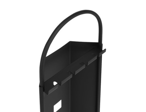 Stojak wyposażony jest w specjalny uchwyt do zawieszania wszystkich przyborów. Posiada także kwadratowe otwory, które pełnią funkcję dekoracyjną.