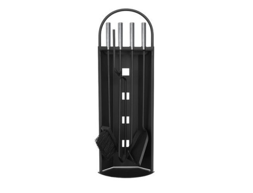 Cały zestaw narzędzi do kominka mieści się na znajdującym się w komplecie stojaku. Klasyczny komplet w kolorze czerni elegancko prezentuje się na tle każdego rodzaju wystroju wnętrz.