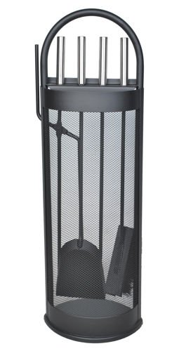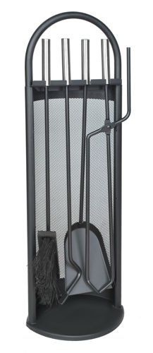 Cały zestaw narzędzi do kominka mieści się na znajdującym się w komplecie stojaku.