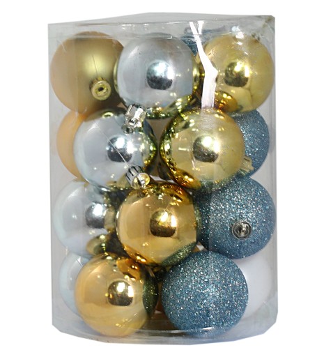 Zestaw plastikowych bombek choinkowych, średnica około 4cm, ilość = 24 sztuk.
