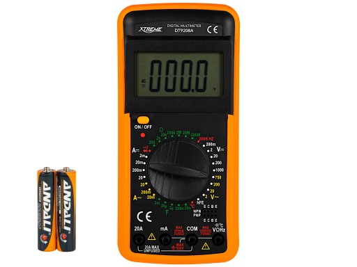 Miernik XTREME jest uniwersalnym narzędziem przeznaczonym do warsztatów czy szkół, ale doskonale sprawdzi się także podczas domowych i profesjonalnych zadań. Cechuje go bardzo czytelny wyświetlacz LCD z możliwością regulacji i ustawienia pod kątem oraz zabezpieczająca i zdejmowalna gumowa osłona, a z tyłu wbudowana została podpórka która ułatwi odczyt wyników podczas wykonywania pomiarów. Do zestawu zostały dołączone także niezbędne przewody.