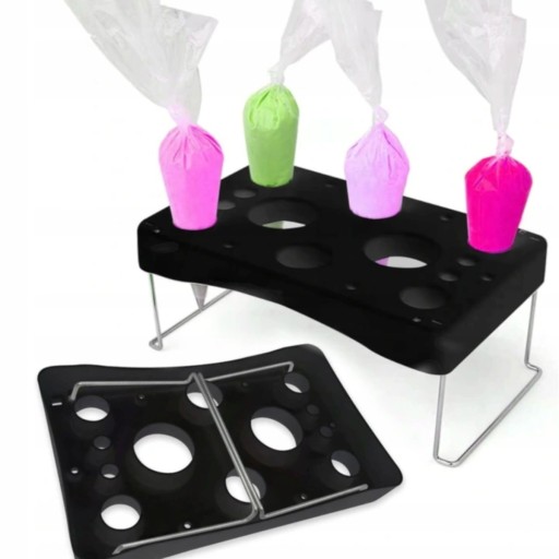 Przydatny w każdej kuchni i cukierni uchwyt na worki dekoracyjne to świetne rozwiązanie pozwalające zaoszczędzić miejsce podczas pracy przy wypiekach.