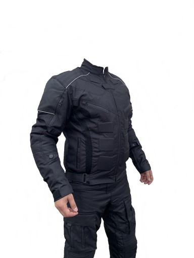 Tekstylna kurtka, komplet ochraniaczy, wypinana podpinka, zamek do spodni, wstawki siatki Mesh