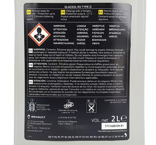 ОХЛАЖДАЮЩАЯ ЖИДКОСТЬ RENAULT - GLACEOL RX TYPE D - 2L