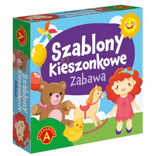 Szablony kieszonkowe to kreatywna zabawka, którą możesz zabrać ze sobą wszędzie. Stanowi niezbędnik małego artysty, który już nigdy nie będzie się nudził w żadnej poczekalni. Zestaw rozwija zdolności artystyczne na kilku płaszczyznach, pozwalając ozdabiać poszczególne elementy, kolorować je, a także odwzorowywać. „Zabawa" zawiera wzory elementów dobrze znanych dzieciom z codziennych rozrywek.