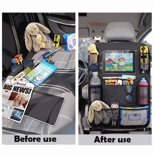 - Organizer na fotel samochodowy jest przeznaczony do zamontowania na tył przednich foteli samochodowych.