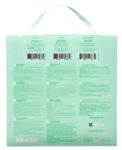 Komplet naczyń z silikonu francuskiej marki Beaba składa się z talerzyka, miseczki, kubka i łyżeczki treningowej. Wszystkie elementy zestawu charakteryzuje ergonomiczny, zaokrąglony kształt i miękkie, gładkie brzegi. Wyższe boki miseczki i talerzyka ułatwiają dziecku samodzielne nabieranie posiłku na widelec czy łyżkę. Naczynia te mają na spodzie antypoślizgową przyssawkę, dzięki czemu są stabilne i dobrze trzymają się stołu. Kubeczek jest poręczny i wygodny do nauki picia, a łyżeczka idealnie dopasowuje się do dziecięcej buzi i można ją odłożyć tak, by główka nie dotykała powierzchni, dzięki czemu jej używanie jest o wiele bardziej higieniczne.Zestaw utrzymany jest w pastelowych kolorach: talerzyk jest jasnoniebieski, miseczka jasnozielona, kubeczek – jasnożółty, a łyżeczka biała. Naczynia można myć ręcznie i w zmywarce, a także podgrzewać w mikrofalówce.