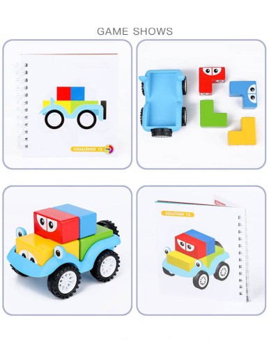 Składany drewniany samochód to propozycja zabawy dla młodych projektantów samochodowych. Zabawny, mały samochód można montować i demontować tyle razy ile się chce. To przede wszystkim zwykła łamigłówka logiczna. Zabawa polega na wylosowaniu wyzwania i zbudowania samochodu przy pomocy 5 różnych klocków, zgodnie ze wskazówkami zadania.