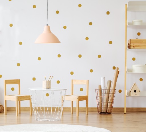 Zestaw zawiera 50 szt. złotych kropek o wymiarach 5 cm.