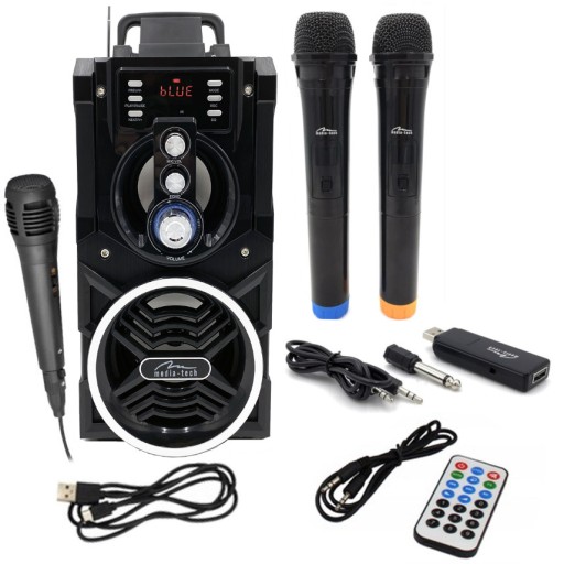 Bluetooth v5.0, radio FM, odtwarzacz MP3, KARAOKE