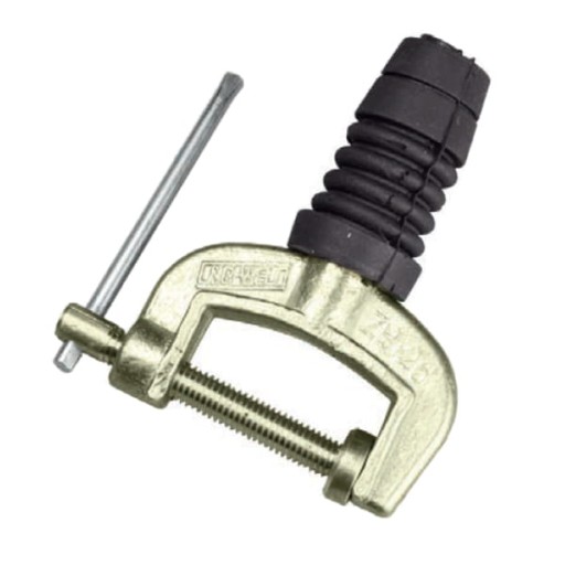 Zacisk masowy śrubowy mosiężny, bardzo dobrą przewodność, wytrzymałość i stabilność. Max. prąd: 160 A, max. rozwartość: 34 mm, max. przekrój przewodu spawalniczego: 35 mm2, masa: 220 g
