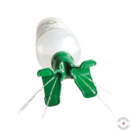 - Nakrętka jest jednocześnie podwójną (DUO) wylewką płuczki, której kształt pomaga zachować otwarte oczy podczas płukania a także przemywać je jednocześnie w sposób łagodny i równomierny