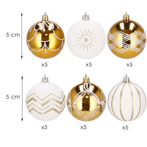 ZESTAW 30 SZT. BOMBKI CHOINKOWE 5 CM ZŁOTE DEKOROWANE