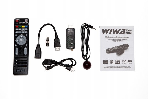 Nowoczesny tuner drugiej generacji WIWA H.265 MINI do montażu w niewidocznym miejscu z tyłu telewizora. Komunikacja z pilotrem odbywa się za pomocą dołączonego dyskretnego odbiornika podczerwieni. Tuner obsługuje darmowe kanały nadawane w naziemnej telewizji cyfrowej w najnowszej technologii H.265/HEVC. Jest to standard, który będzie obowiązywał w Polsce. Tuner jest kompatybilny ze starszymi technologiami H.264 i MPEG-4, które są aktualnymi standardami nadawania w Polsce. Tuner posiada dostęp do Internetu realizowany za pośrednictwem anteny Wi-Fi łączonej przez port USB (zestaw nie zawiera anteny Wi-Fi). Tuner jest sterowany pilotem z funkcją Memo Control (programowalne przyciski – umożliwiające obsługę dekodera i odbiornika TV jednym pilotem). OSD w języku polskim wyświetlane na ekranie telewizora jest przejrzyste, intuicyjne i łatwe w obsłudze. Całość zamknięta w małej solidnej obudowie.