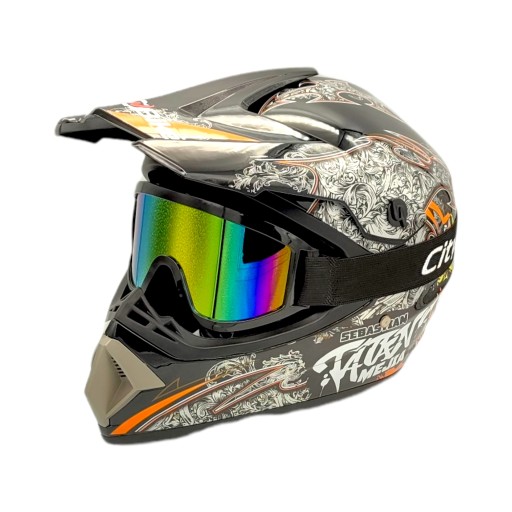 CROSSOWY KASK MOTOCYKLOWY + GOGLE + RĘKAWICE