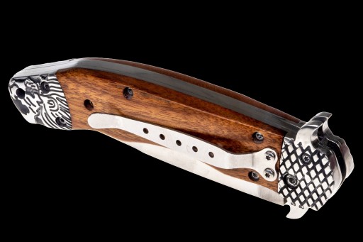 Nóż został wykonany z wysokogatunkowej stali nierdzewnej 65x13. Posiada zabezpieczenie przed przypadkowym zamknięciem.