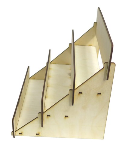 - Stojak o wymiarach po złożeniu: wysokość: 175mm, szerokość: 240mm, głębokość: 190mm. Szerokość wewnętrzna każdego stopnia: 220mm, głębokość każdego stopnia 58mm
