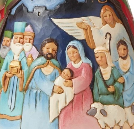 Piękny Mikołaj z szopką i Świętą Rodziną, motyw nawiązuje do starej kolędy