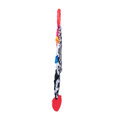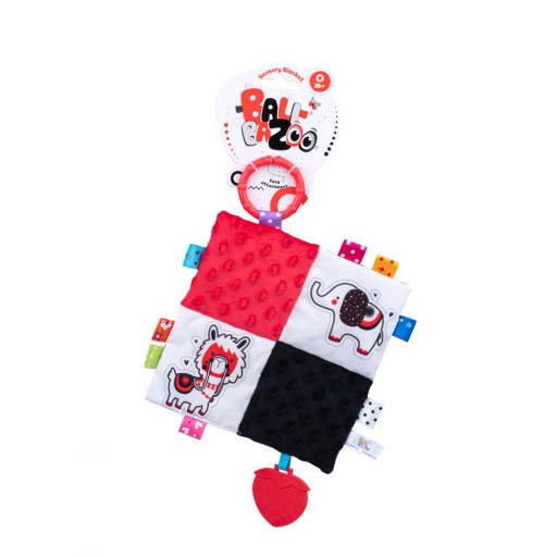 Sensoryczny kocyk z podobiznami zwierzaków sprawdzi się idealnie zarówno w domu, jak i w podróży. Ta niepozorna zabawka w kontrastowych kolorach posiada mnóstwo niespodzianek, które stymulują zmysły maluszka i pozwalają mu rozwijać zdolności poznawcze. Wykonany ze zróżnicowanych materiałów kocyk szeleści podczas zgniatania, a zdobią go kolorowe metki o różnych fakturach. Praktyczne kółeczko ułatwi przyczepianie zabawki w dowolnym miejscu, aby mogła towarzyszyć dziecku dosłownie wszędzie.
