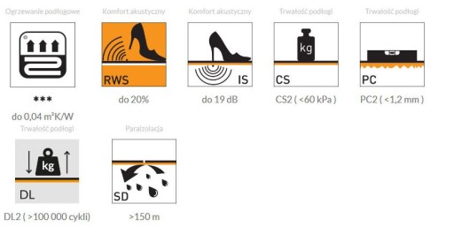 - Podkład posiada niską wartość oporu cieplnego co pozwala na efektywną i ekonomiczną pracę systemu grzewczego.