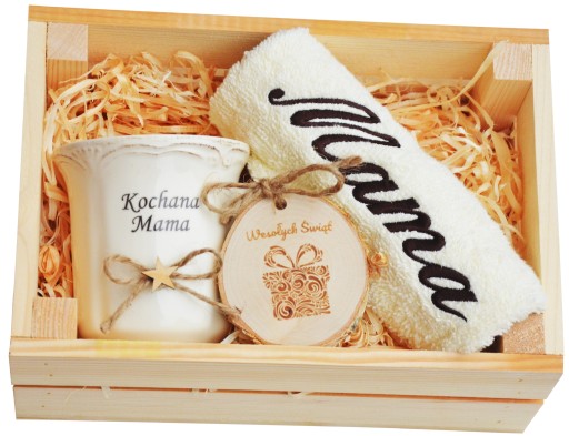 Piękny i praktyczny prezent na Święta Bożego Narodzenia - ręcznik z haftem, porcelanowy kubek, a całość pięknie ozdobiona i zapakowana. Doskonały prezent pod choinkę.