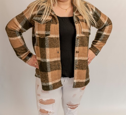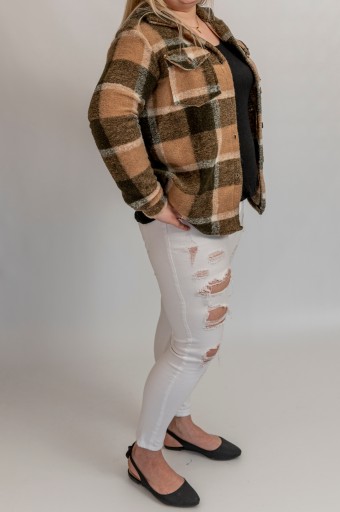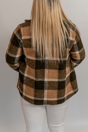 Filcowa koszula-kurtka w kratę. Uniwersalne okrycie wierzchnie, które możesz nosić samo lub narzucić na bluzkę. Wykonana z przyjemnego w dotyku materiału koszula jest zapinana na guziki. Ma na wysokości piersi funkcjonalne kieszenie. W połączeniu z czarnymi rurkami i jesiennymi botkami stworzy ładną, casualową stylizację.