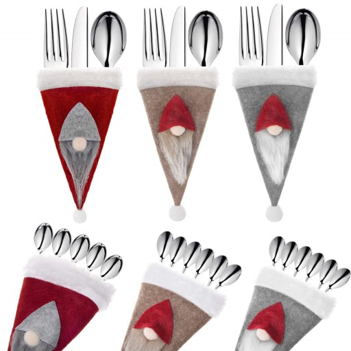 Pokrowce na sztućce doskonale sprawdzą się podczas przygotowywania świątecznej zastawy stołu, prezentu czy dekoracji wnętrza. Wzór gnoma zachwyci zarówno najmłodszych, jak i dorosłych członków rodziny.