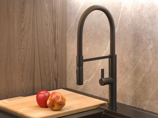 ПОЛНОСТЬЮ ЧЕРНЫЙ КУХОННЫЙ СМЕСИТЕЛЬ С ВЫДВИЖНОЙ ЛЕЙКОЙ