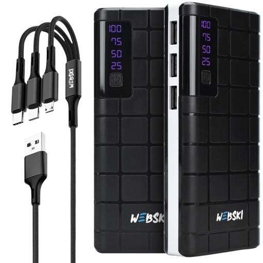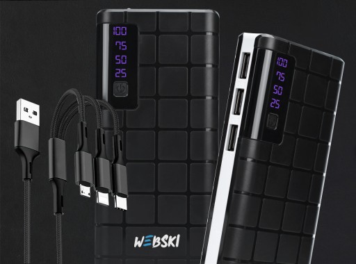 Webski Power Bank został wyposażony w aż trzy porty ładujące USB, każdy o natężeniu prądu aż 2.1A, 2.1A, 2.1A. Pozwala to na naładowanie praktycznie każdego urządzenia.
