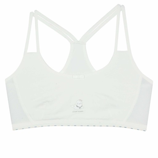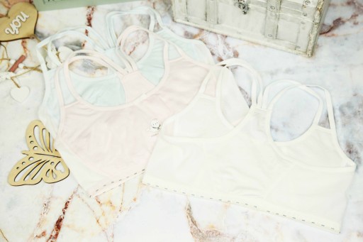 Staniczek posiada podwójne ramiączka oraz wstawki z delikatnej siateczki. Wykończony jest subtelną kokardką.