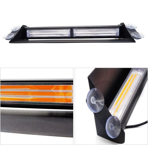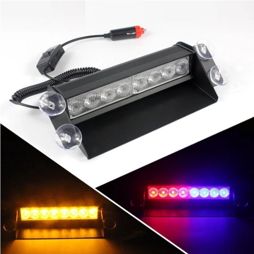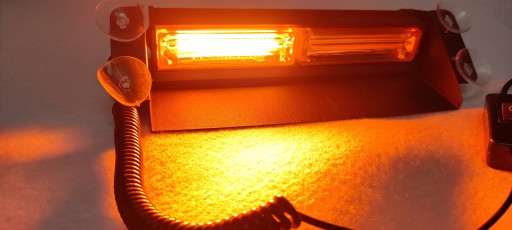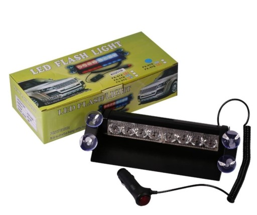 Lampa montowana do szyby samochodu, zasilana z zapalniczki samochodowej. Stroboskop posiada wiele programów świecenia.
