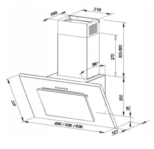 ВЫТЯЖКА INOX, СТЕКЛО, СВЕТОДИОД, 50СМ, ФИЛЬТР
