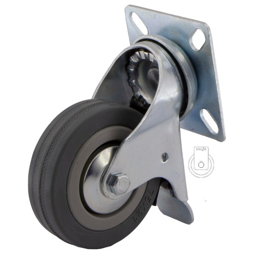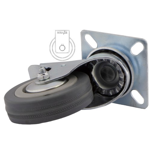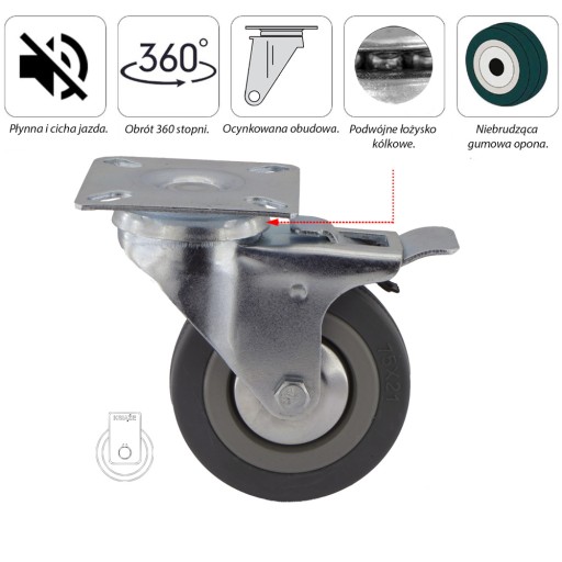 Koło składa się z polipropylenowej piasty oraz z niebrudzącej gumowej opony, posiada łożysko ślizgowe, wersja z osłonką.