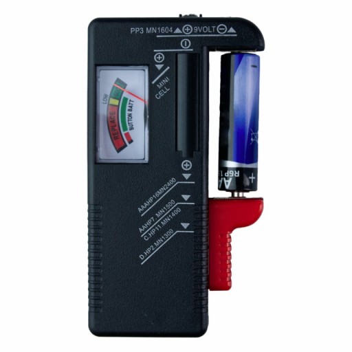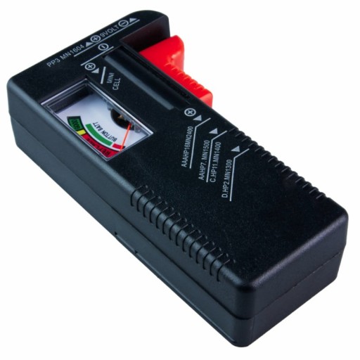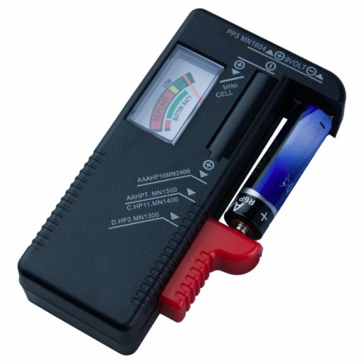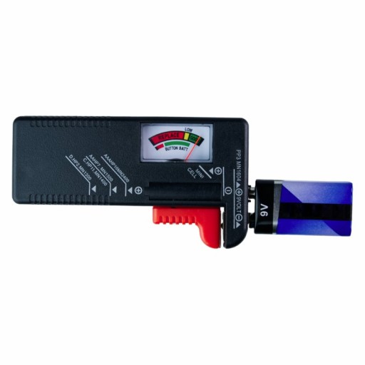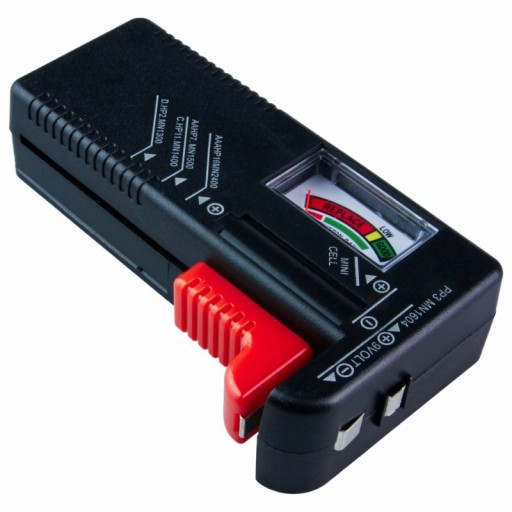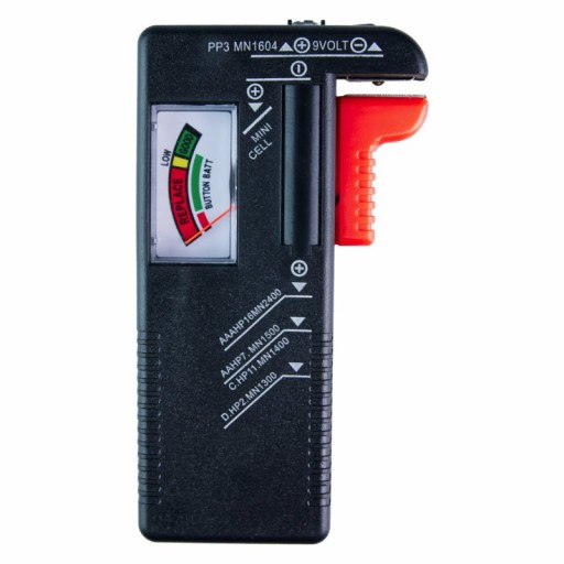 Dołączony do organizera tester do baterii umożliwia szybkie i łatwe sprawdzenie aktualnej pojemności baterii (GOOD - bateria naładowana, LOW - bateria częściowo rozładowana, REPLACE - bateria rozładowana - do wymiany). Tester pomaga na wykorzystanie baterii do końca i zapobiega przypadkowemu wyrzuceniu baterii naładowanych. Tester nie wymaga dodatkowych baterii do działania.