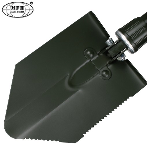 Składana saperka z rękojeścią i głownią wykonaną z wytrzymałej stali, pokrytej powłoką ochronną. Dzięki niewielkiej wadze oraz kompaktowym wymiarom doskonale sprawdzi się w czasie biwaku, survivalowej wyprawy, poszukiwań z wykrywaczem metalu lub jako awaryjna łopata do śniegu przewożona w bagażniku samochodowym.