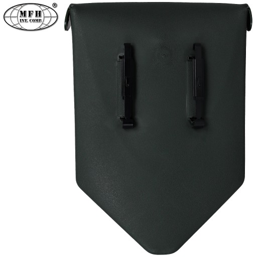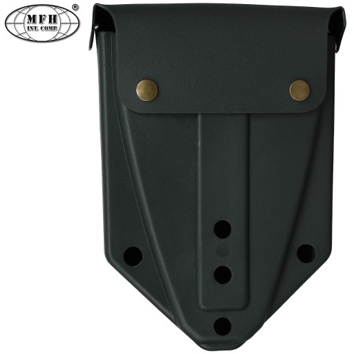 Gumowy pokrowiec zapinany na zatrzaski dołączony do zestawu umożliwia przymocowanie saperki do pasa lub innego elementu wyposażenia.